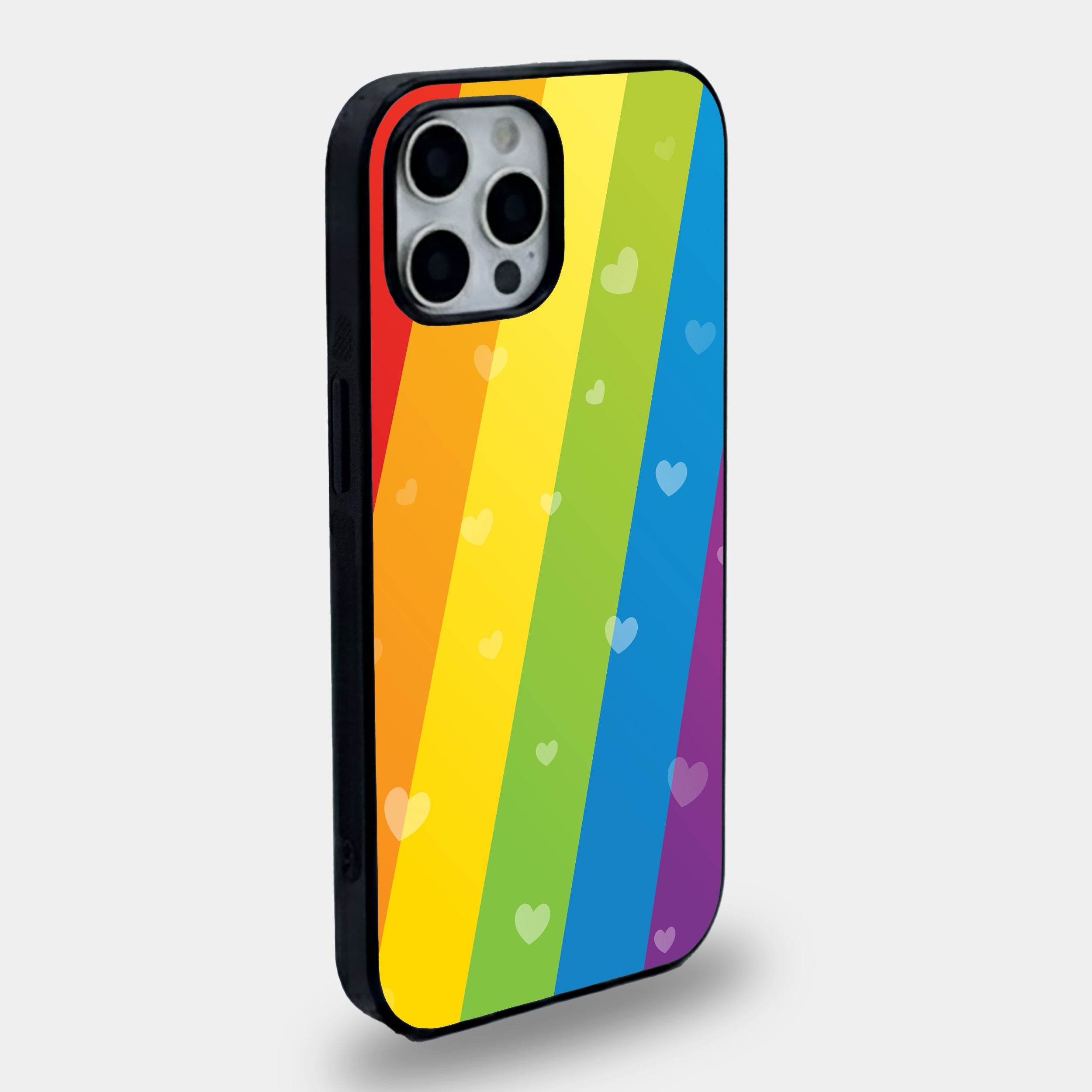 This design is vibrant, inclusive, and full of positive energy. The diagonal rainbow stripes combined with the subtle, floating heart motifs make it a perfect accessory for anyone who wants to wear their heart on their sleeve—or rather, on their phone.