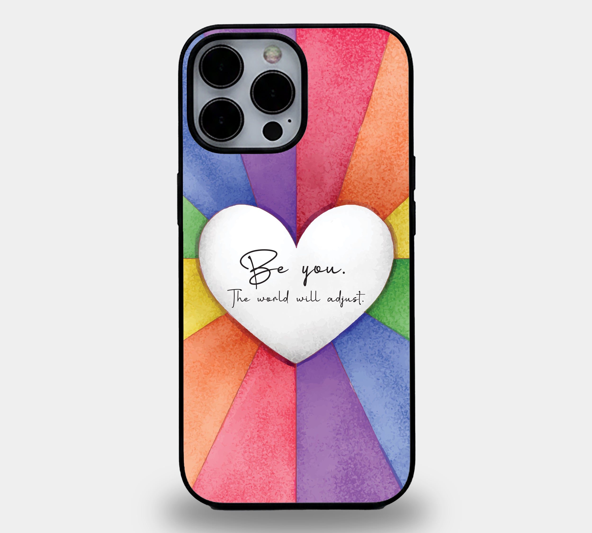 "Be You" Rainbow Heart Watercolor | Premium Glass iPhone Mobile Cover Case